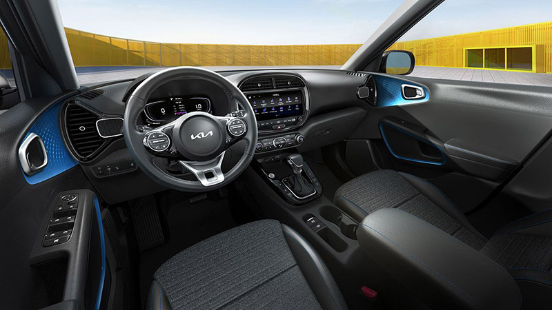 The 2023 Kia Soul’s boxy design delivers not only fantastic sightlines to drivers but plenty of passenger and cargo space. It’s a surprisingly spacious vehicle for its compact exterior footprint and is comfortable enough for adults in all rows. The fashion-forwardness found outside transfers easily into the interior with colorful trim and textured door panel inserts. Depending on the model chosen, you can expect goodies such as ambient lighting, a smartphone charging pad, a head-up display, push-button ignition with keyless entry, and heated seats and steering wheel.