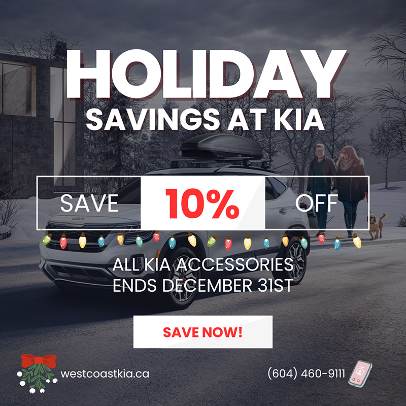 Save 10% off all Kia accessories. Ends December 31st.